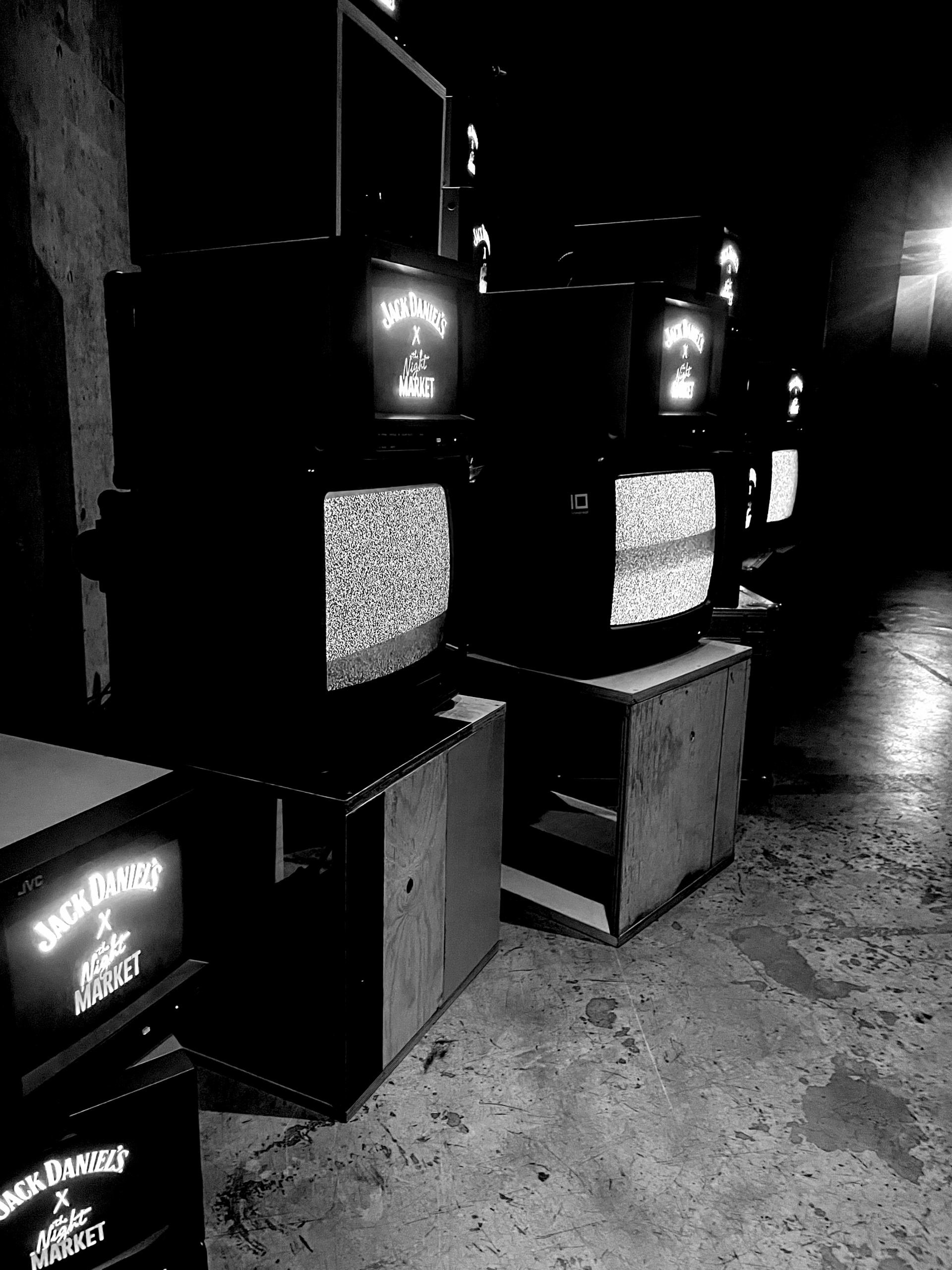 Wieviele Adapter braucht man, um von einem digitalen auf ein analoges Signal zu wandeln? Für Jack Daniel’s haben wir das ausprobiert und im MOJO eine modulare Installation aus Röhrenfernsehern umgesetzt – einzeln oder als Wand bespielbar. Digitale Inhalte, analog übertragen – ein bewusster Bruch, der neue Bildräume öffnet: roh, verzerrt und in 4:3. Die Monitore reagieren audioreaktiv und lassen sich inhaltlich flexibel steuern.