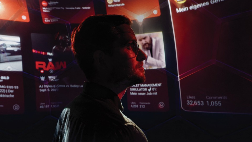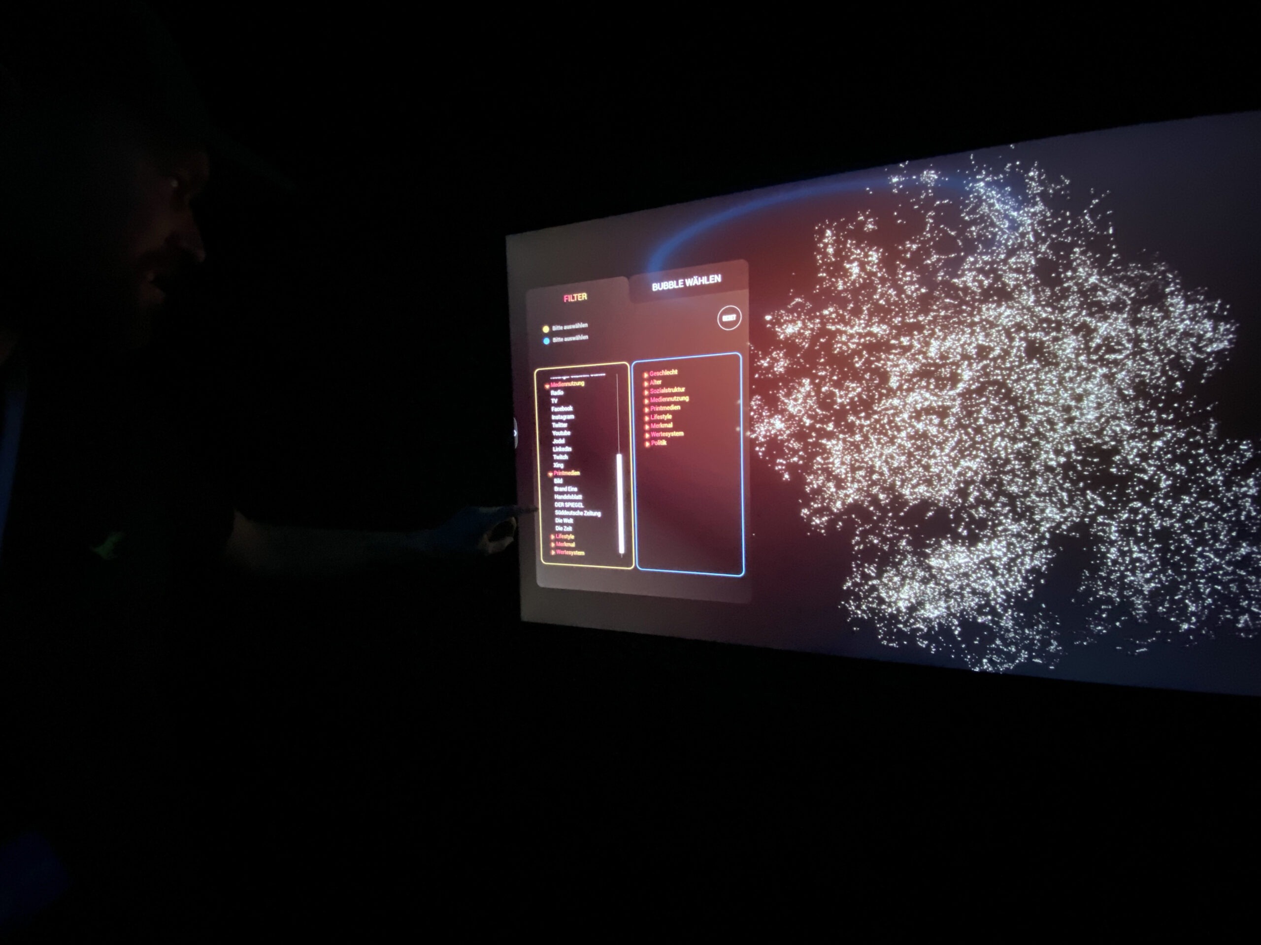 Ein immersiver Raum für digitale Identitäten: Für Jung von Matt wurde eine 3,7 m große Projektionskuppel realisiert, in der individuelle Filterblasen visuell, auditiv und interaktiv erfahrbar werden. Gesteuert per Smartphone, gespeist durch KI und Social-Media-Daten – das Bubbleversum bringt Zielgruppenforschung in den Raum.